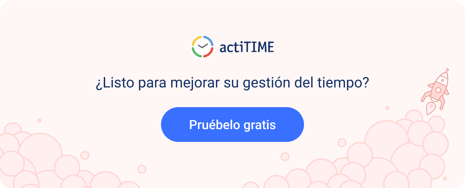 Si se siente abrumado por las herramientas y técnicas de gestión de proyectos, le invitamos a empezar con el periodo de prueba gratuito de actiTIME (no necesita tarjeta de crédito).