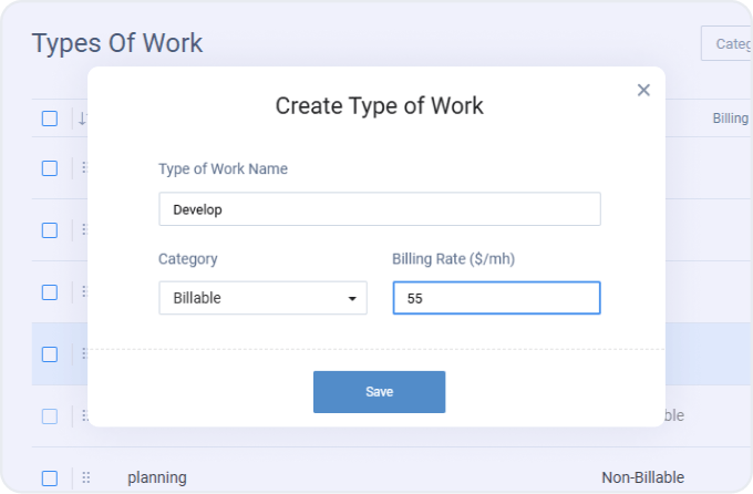 checkQuickly set and change billing rates for tasks associated with specific types of work.