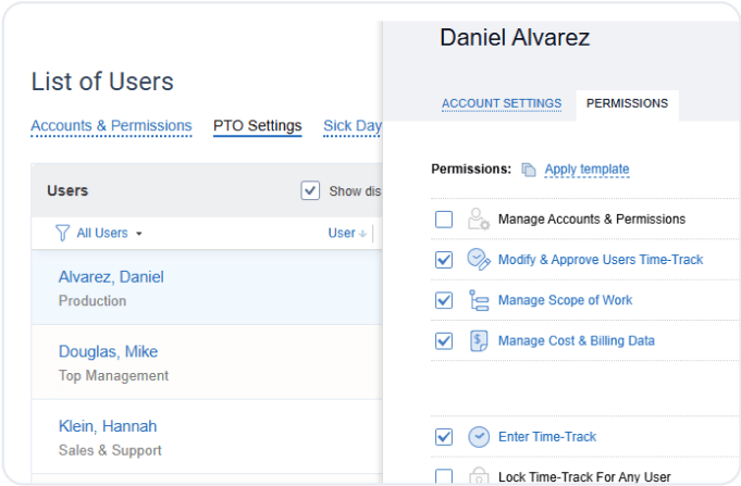 Customize regular, overtime, and leave time rates to easily track project expenses and profitability.