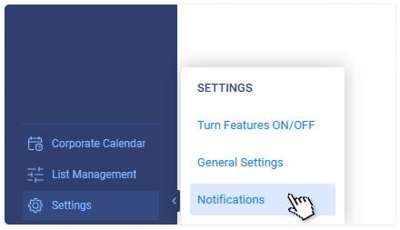 The exact time when notifications are sent may be specified in the Settings → General Settings interface. It is the same for all users, but each user will receive the notifications in their local time zone.